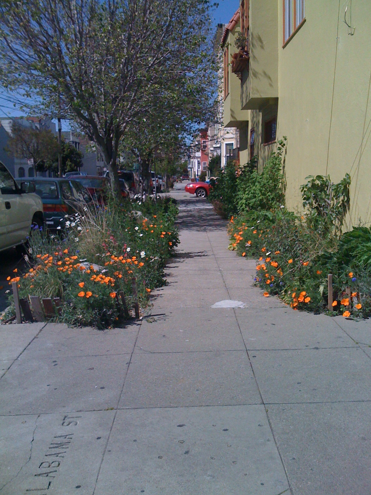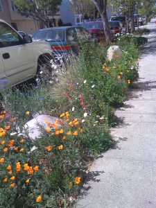 It’s definitely not a small garden but the same planting scheme can be used in a smaller – but still sunny – space. My neighbors planted a mostly CA native meadow along their strip of sidewalk that looks great every spring.