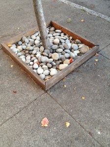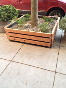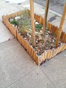 It’s not good to have soil surrounding a tree trunk like that but the walls of the box seem nice and sturdy. And I like the horizontal slats.