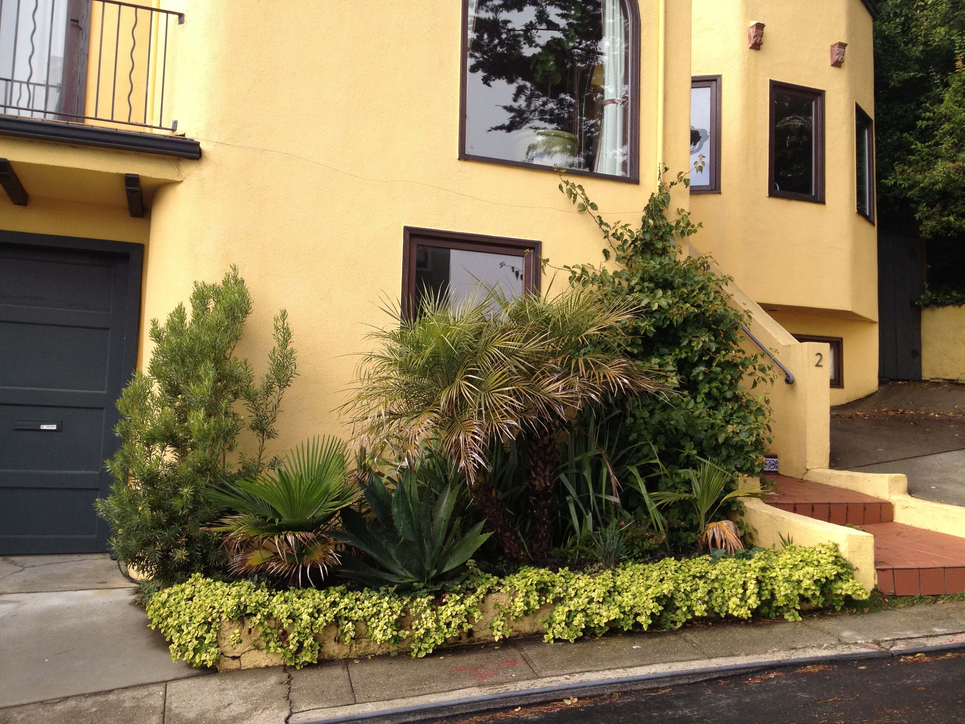 This entryway has a nice variety of textures but a pretty simple color palette of yellows and greens that look great against the buff background.
