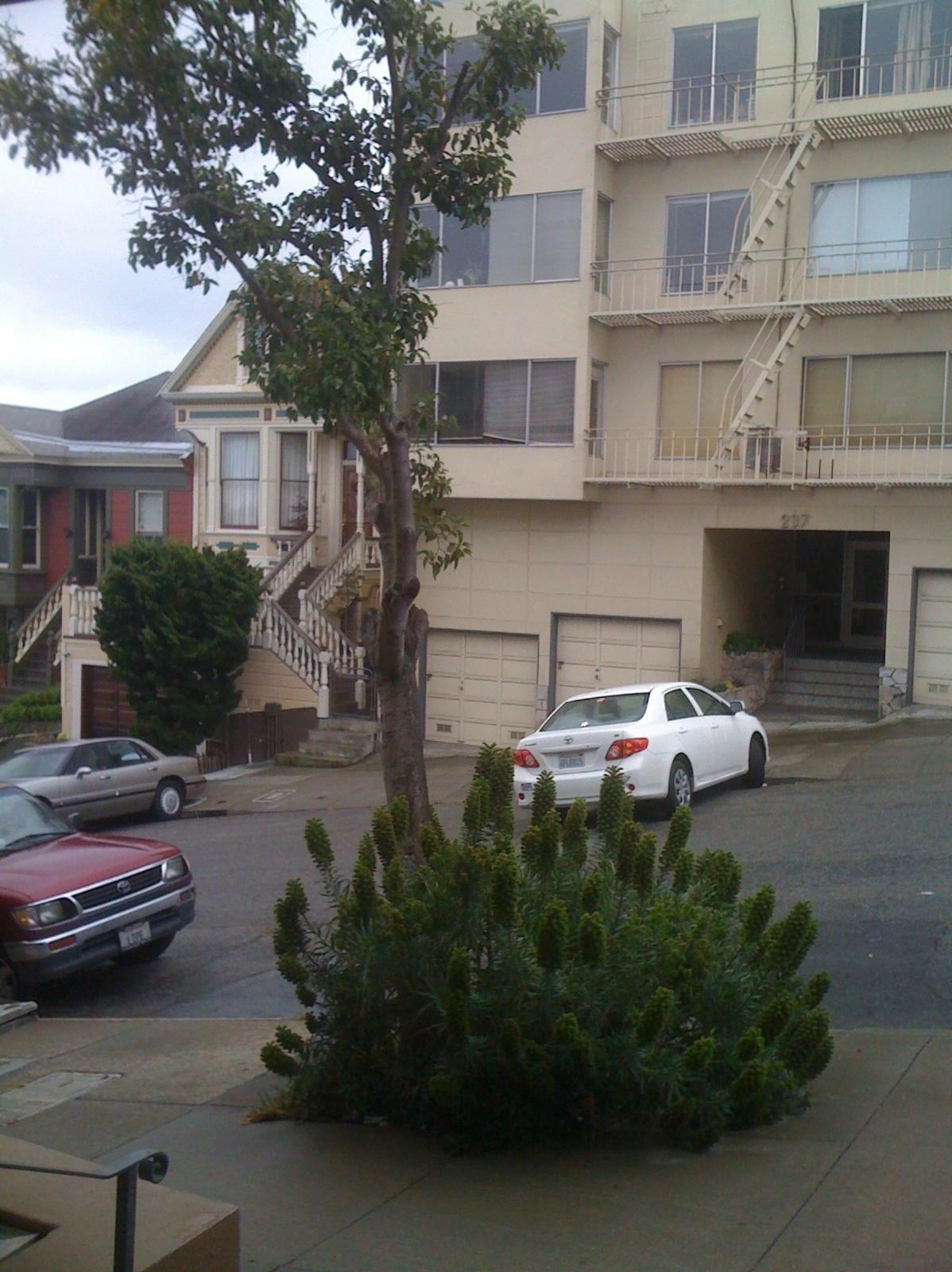 On a side note – I’ve been timing trips around San Francisco because I’ll be buying a truck soon for mulching and installations. So far, because of the parking difficulties, the door-to-door bike vs car timing is either equal or the bike is faster – even for getting from the mission to the sunset. I’ll keep timing but my guess is that even with a truck ready to go I may end up relying on the bike for routine maintenance.
